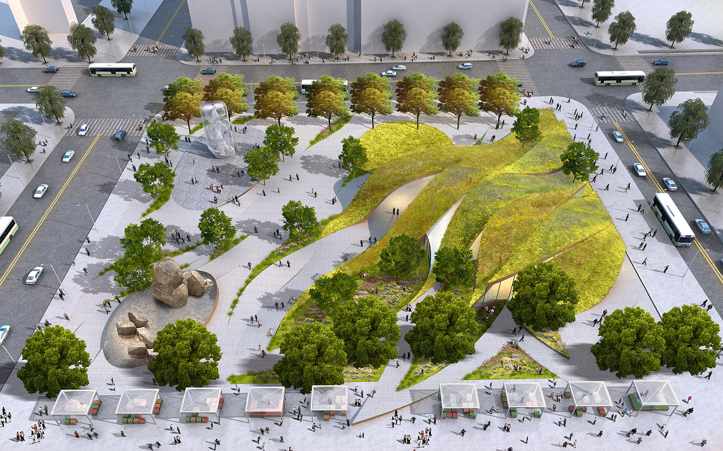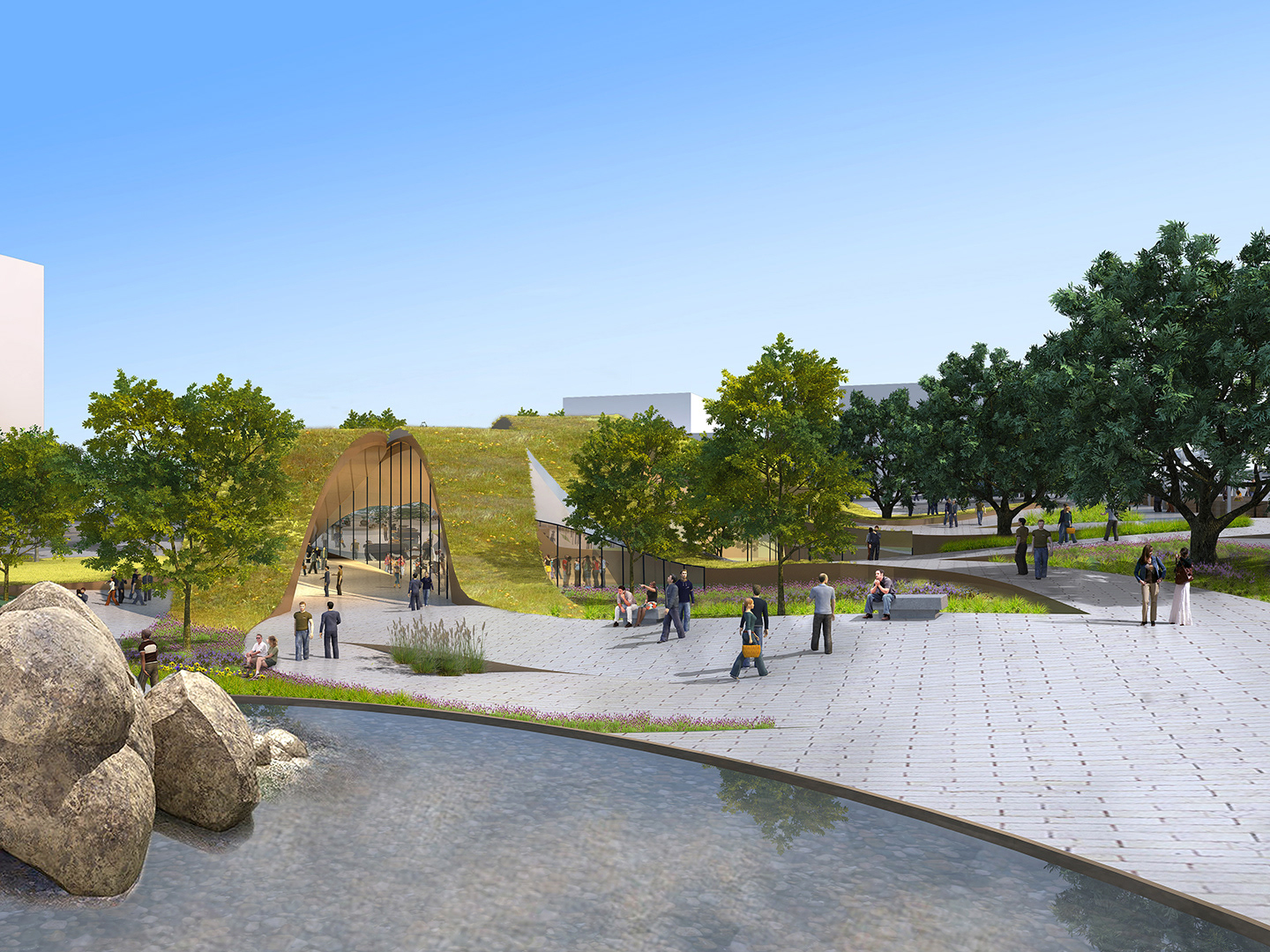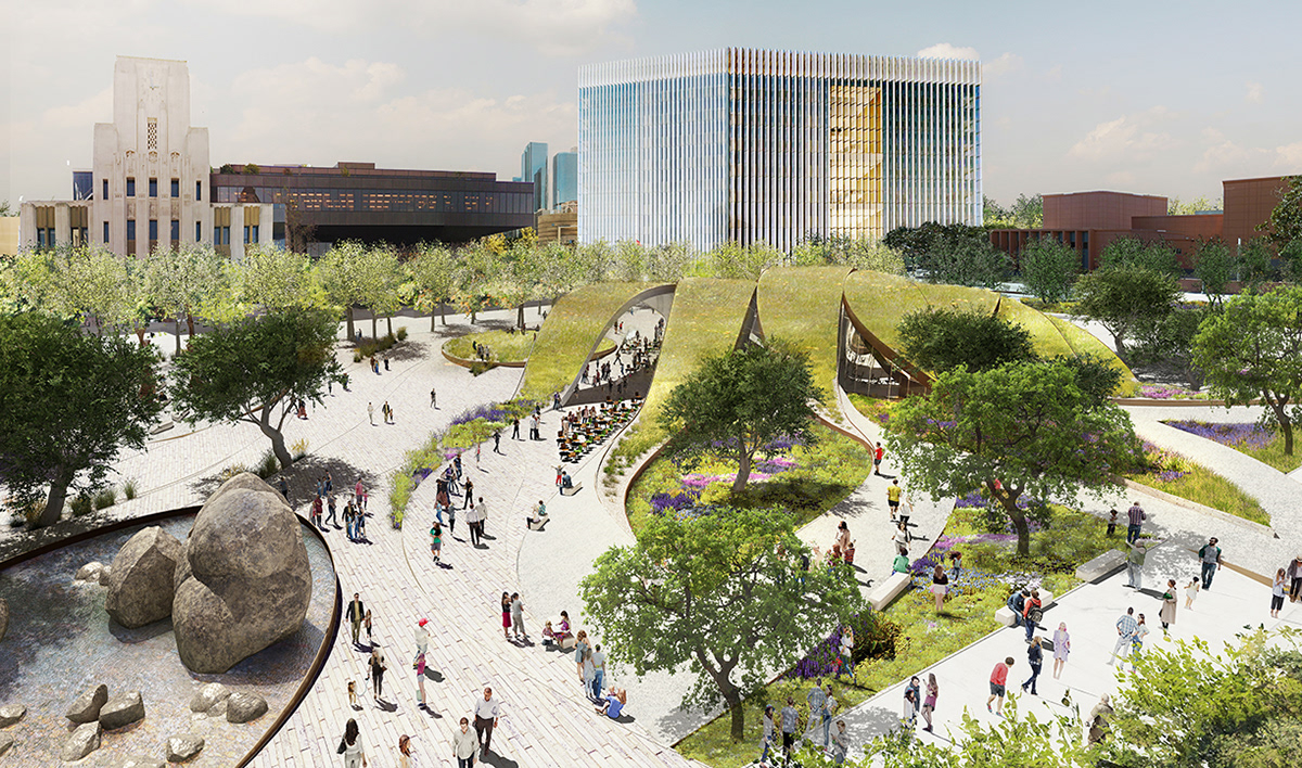 The $12 mil. First and Broadway (FAB) Civic Center Park introduces a new type of park space, a respite for downtown LA that celebrates the city's diversity as its greatest asset and promotes civic engagement through highly versatile spaces to experience art, enjoy food and revel in the unique urban setting. The 1.96-acre site, located at 217 W. 1st Street in Downtown Los Angeles, was purchased by the City’s Department of Recreation and Parks from the State in 2013, and was made a dedicated park land for the development of a new park, under the City’s “50 Parks Initiative”. Extensive site demolition to remove remnants of a former 1931 13-story State office building and a 2-level underground parking structure was completed in late 2014. Given the prominence of the site, and the City’s interest in embracing innovative design thinking, the City has a unique opportunity to design and construct an iconic park project in the Los Angeles Civic Center, that will augment the adjacent Grand Park, incorporate uses that bring life to the area (such as restaurant and public art installation). The opportunities also exist to initiate a public design dialogue about the most compelling uses, the most creative design approach, and themes for the development of the open space, that will make this a unique Los Angeles civic open space.